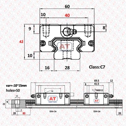 GEH 30 SA (EGH 30SA), EGH Series, Linear Guide Blocks, CNC Linear Guideways. Made in Taiwan. Unit weight 0.45kg. Dimensions: 0x0x0x0x0. Standard packing: single piece in a pack.