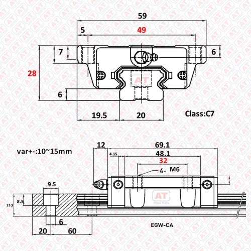 GEW 20 CC (EGW 20CC), EGW Series, Linear Guide Blocks, CNC Linear Guideways. Made in Taiwan. Unit weight 0.32kg. Dimensions: 0x0x0x0x0. Standard packing: single piece in a pack.