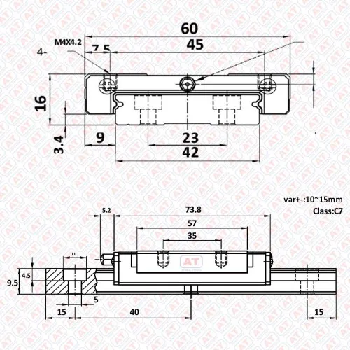 GMW 15H (MGW 15H), MGW-Series, Miniature Linear Guideways, CNC Linear Guideways. Made in Taiwan. Unit weight 0.23kg. Dimensions: 0x0x0x0x0. Standard packing: single piece in a pack.
