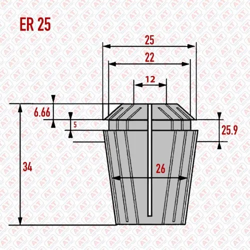 CNC Machine Parts | Collets & Clamping Nuts | Collets | Collet ER25-12mm