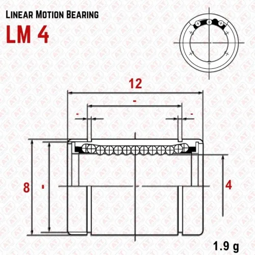 LM 04UU, LM-LML Series, Compact Ball Bushings, Linear Motion Bearings. Made in China. Unit weight 0.002kg. Dimensions: 4x8x12x0x0. Standard packing: single piece in a pack.