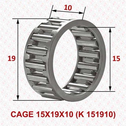 CAGE 15X19X10 (K 151910), K Series, Needle Cage Assembly, Needle Roller Bearings. Made in China. Unit weight 0.01kg. Dimensions: 15x19x10x0x0. Standard packing: 10 pcs in a pack.