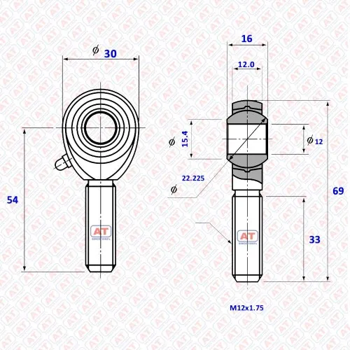 POS 12, POS Series, Male Thread R+L, Rod End Bearings. Made in China. Unit weight 0.09kg. Dimensions: 12x30x16x0x0. Standard packing: single piece in a pack.